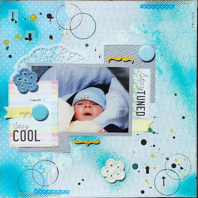 Dziś cudny, delikatny scrap Wiosanki ze zdjęciem jej młodszego synka.