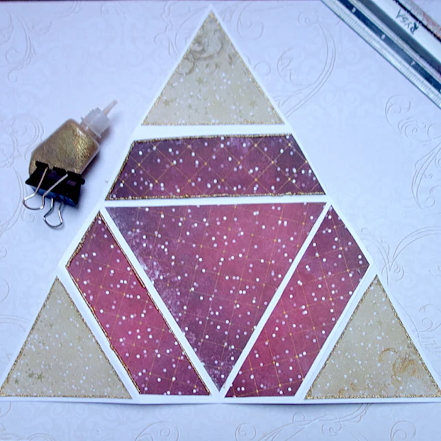 Następnie obracamy bazę na drugą stronę i przyklejamy trójkąty.