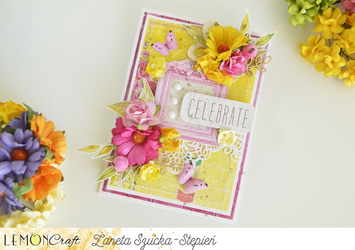Dodałam ramkę, kwiatki, motylki i kilka perełek.