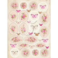 Wykorzystałam prawie wszystko z tego arkusza - kwiaty, zegary, motyle i ramkę!